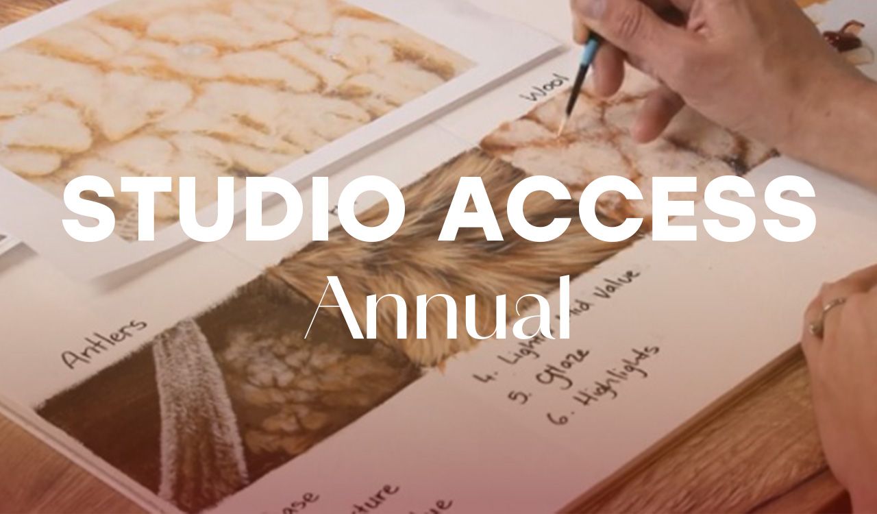 All Access includes everything. My full tutorial library, exclusive content, live demonstrations, and the Studio Archives.